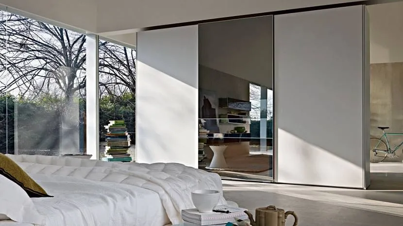 Раздвижные двери гардеробной — отличное решение для очень маленьких спален