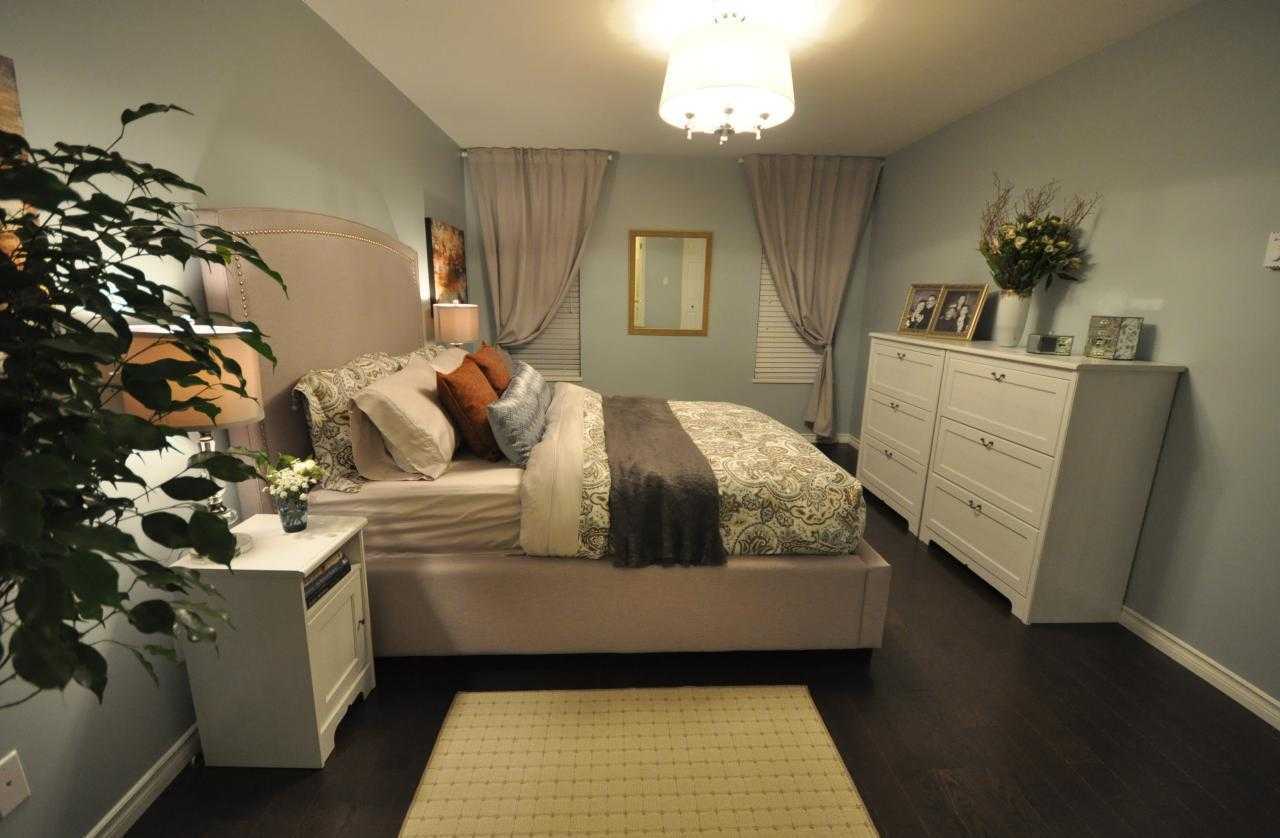 Когда площадь комнаты небольшая и место для такого «шика» нет, мы приставляем кровать к стене или окну. Некоторое неудобство возникает из-за невозможности залезть на неё с двух сторон, но маленькая спальня хуже от этого выглядеть не начинает. Это вполне стандартный вариант, многие его уже применяли и интерьер спальни не особо страдает. Оценить можете на фотографиях: