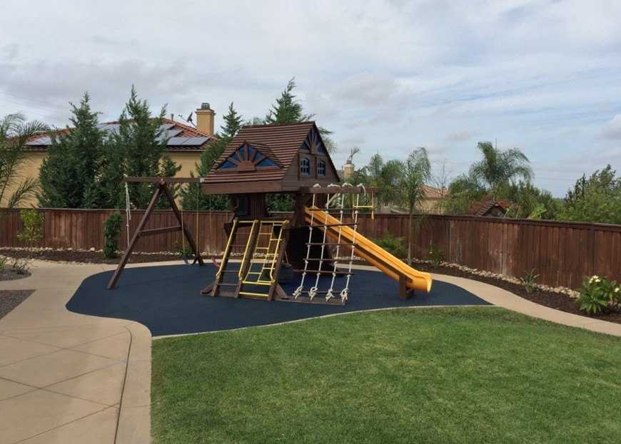 Во дворе делаются переходы из ступенек. Приветствуются необычные формы мебели, декора. Из материалов выбираются удачные сочетания сайдинга и камня, бетона и металла, дерева и пластика.