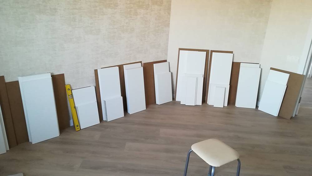При монтаже гарнитура могут возникнуть нестыковки, например останется зазор между шкафом и стеной. Это происходит потому, что в бюджетных кухнях используют шкафы стандартного размера. Они не всегда вписываются как влитые, в отличие от гарнитуров на заказ.