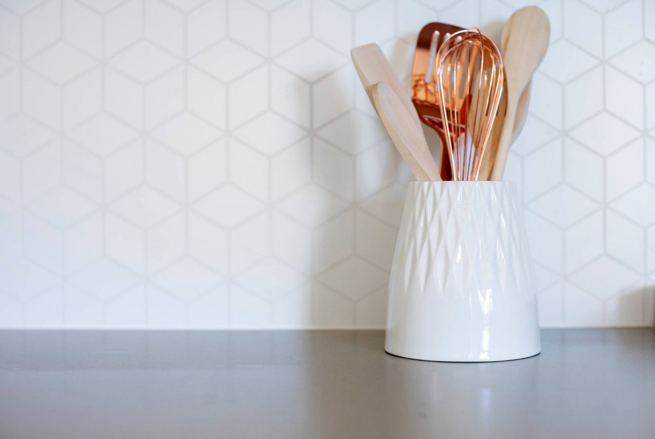 Традиционно стык между фартуком и столешницей закрывают плинтусом: чаще алюминиевым, реже деревянным. Сегодня такое решение выглядит устаревшим. Замаскировать зазор можно и без плинтуса.