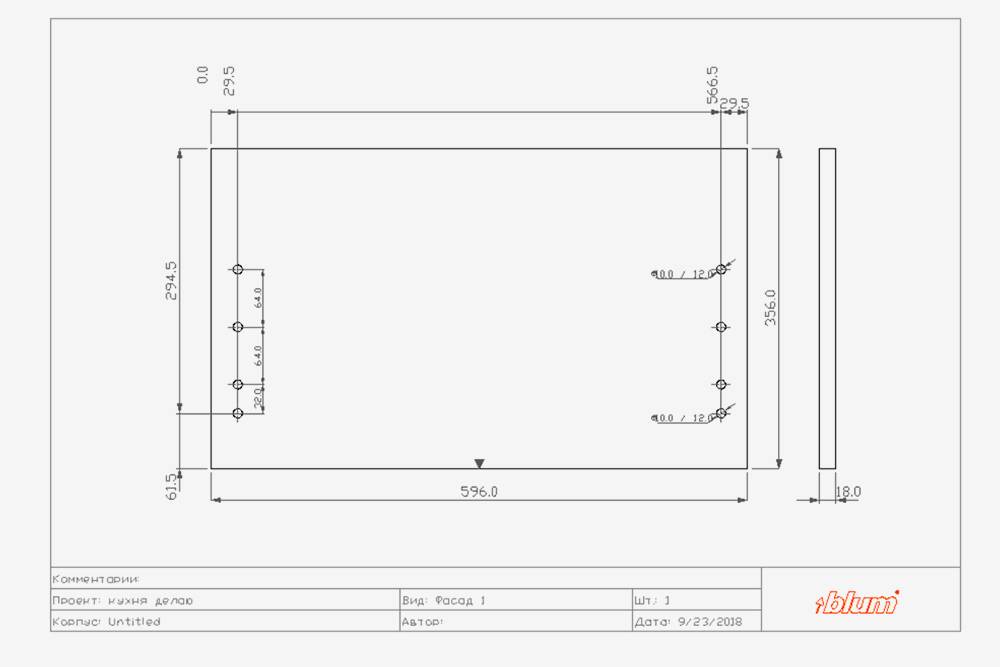 Разметку фасадов выдвижных ящиков я делал в проектировщике «Блум»