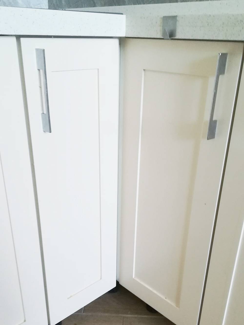 При монтаже гарнитура могут возникнуть нестыковки, например останется зазор между шкафом и стеной. Это происходит потому, что в бюджетных кухнях используют шкафы стандартного размера. Они не всегда вписываются как влитые, в отличие от гарнитуров на заказ.