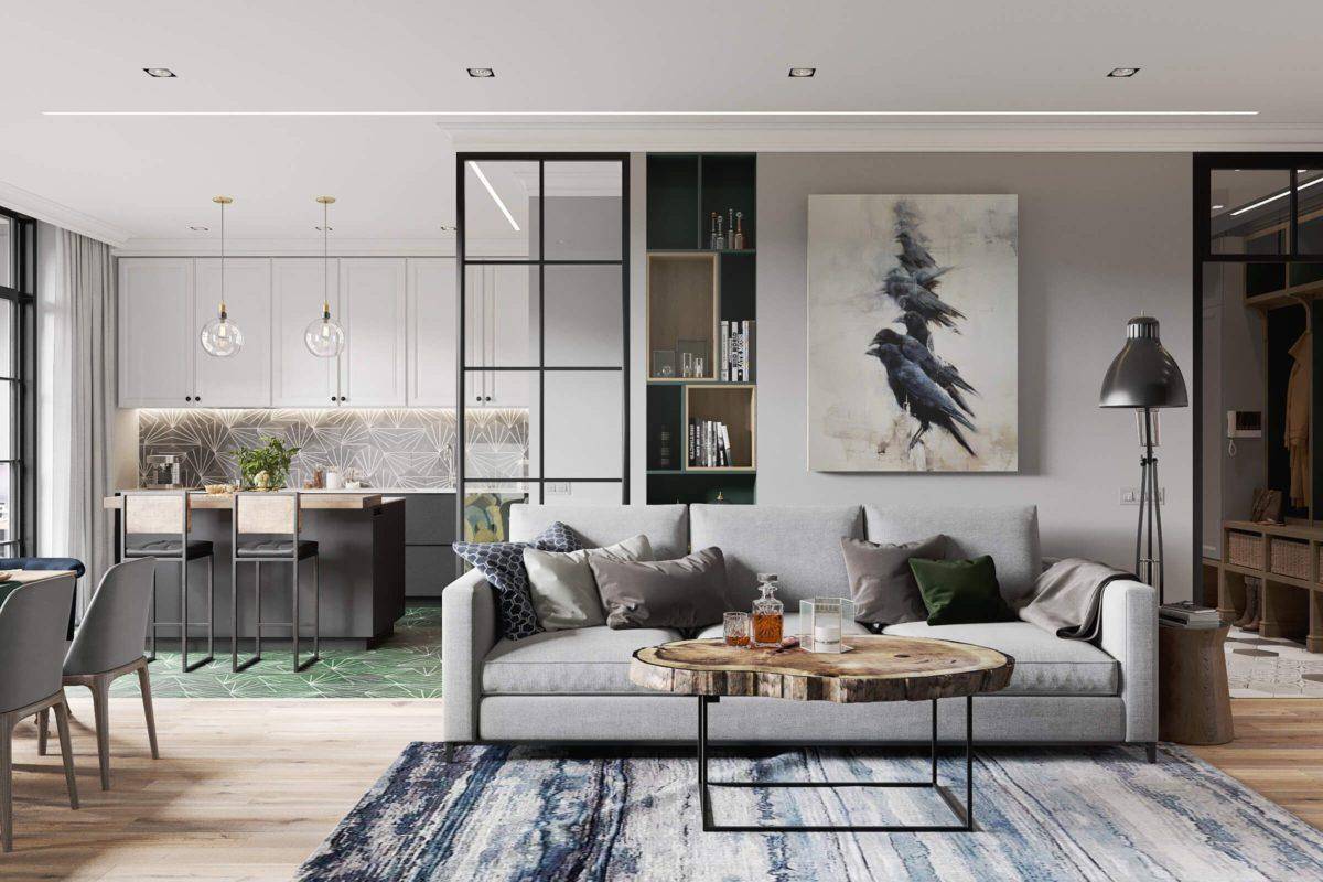 Шикарный интерьер в серых и темно-зеленых оттенках