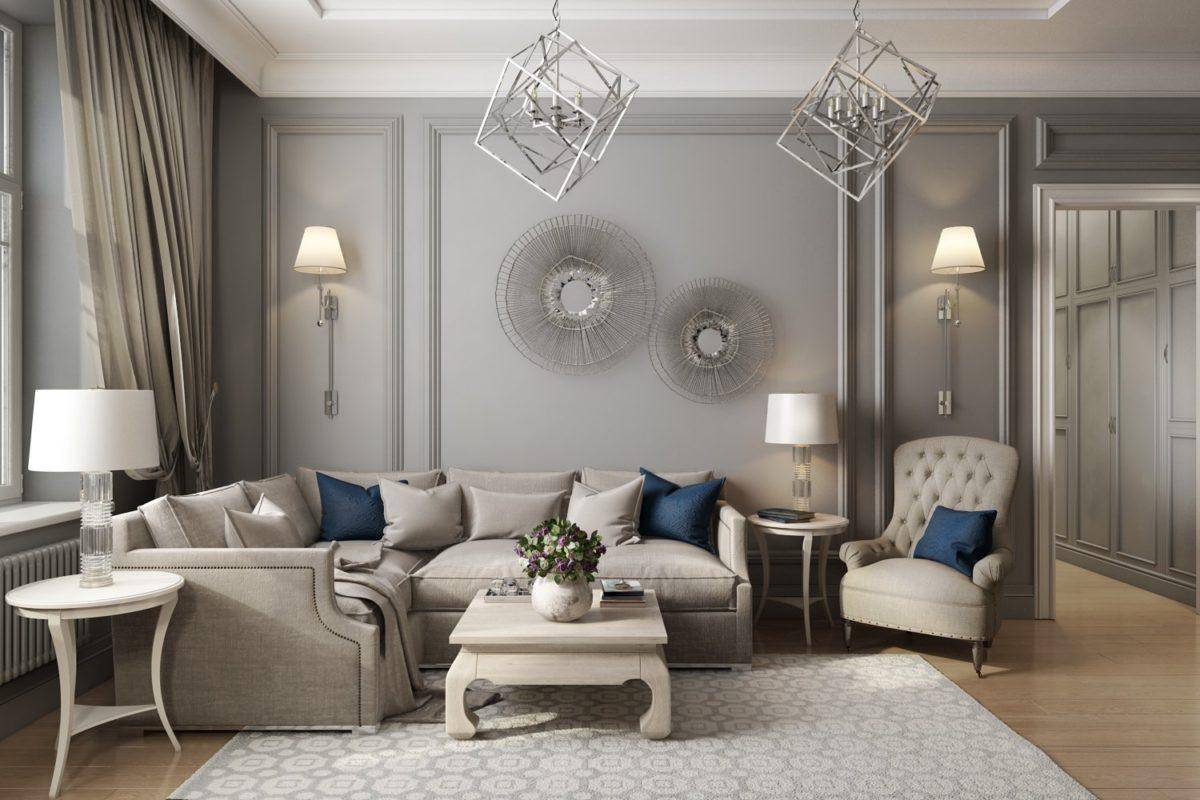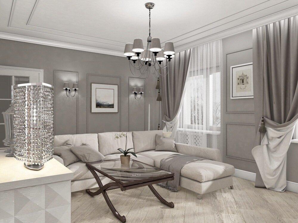 Гостиная в серых цветах подходит практически для любого стиля – от кантри до неоклассики. Очень органично выглядит такое оформление в популярном скандинавском стиле, лофте или хай-теке.