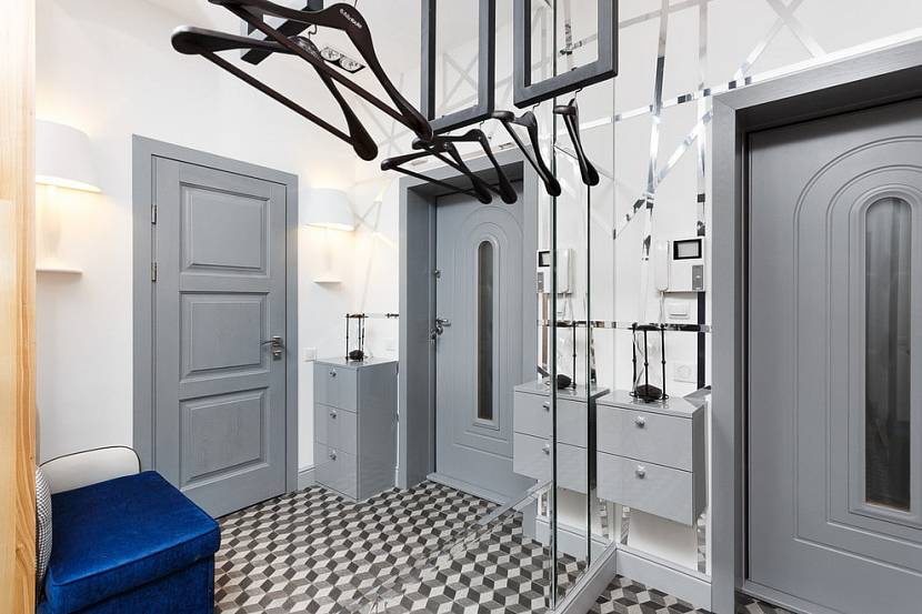 Серые двери в прихожей с белыми стенамиИсточник design-homes.ru