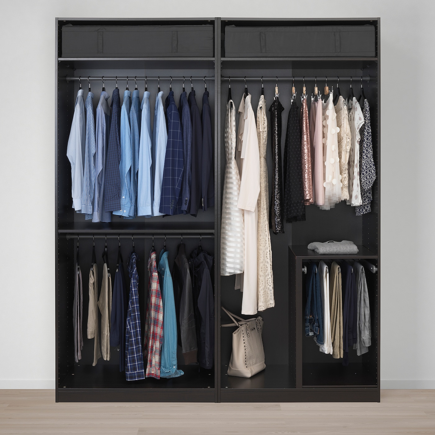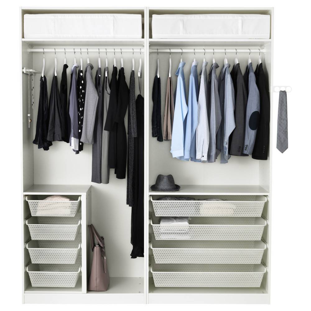 Шкафы-гардеробы данной модели Пакс сконструированы так, что одежда, которая там хорошо видна и ее всегда удобно достать. При этом вещи не пылятся. Предназначены для всех видов одежды: повседневной, праздничной, нижнего белья.