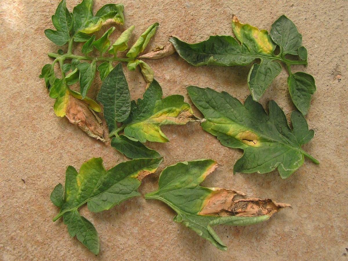 - появление на листочках желтых пятнышек и точек, которые со временем превращаются в светло-желтые некрозные пятна;