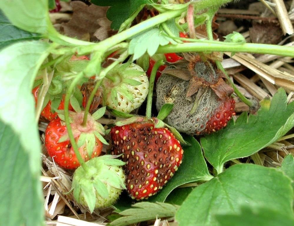 Чтобы защитить землянику садовую от серой гнили, перед цветением проведите опрыскивание посадок ярко-розовым раствором марганцовки. Повторите процедуру сразу после цветения, а также еще раз через 12-14 дней.