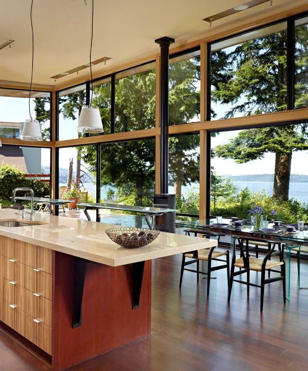 Самым комфортным местом для размещения обеденной группы или столовой считается место у окна.