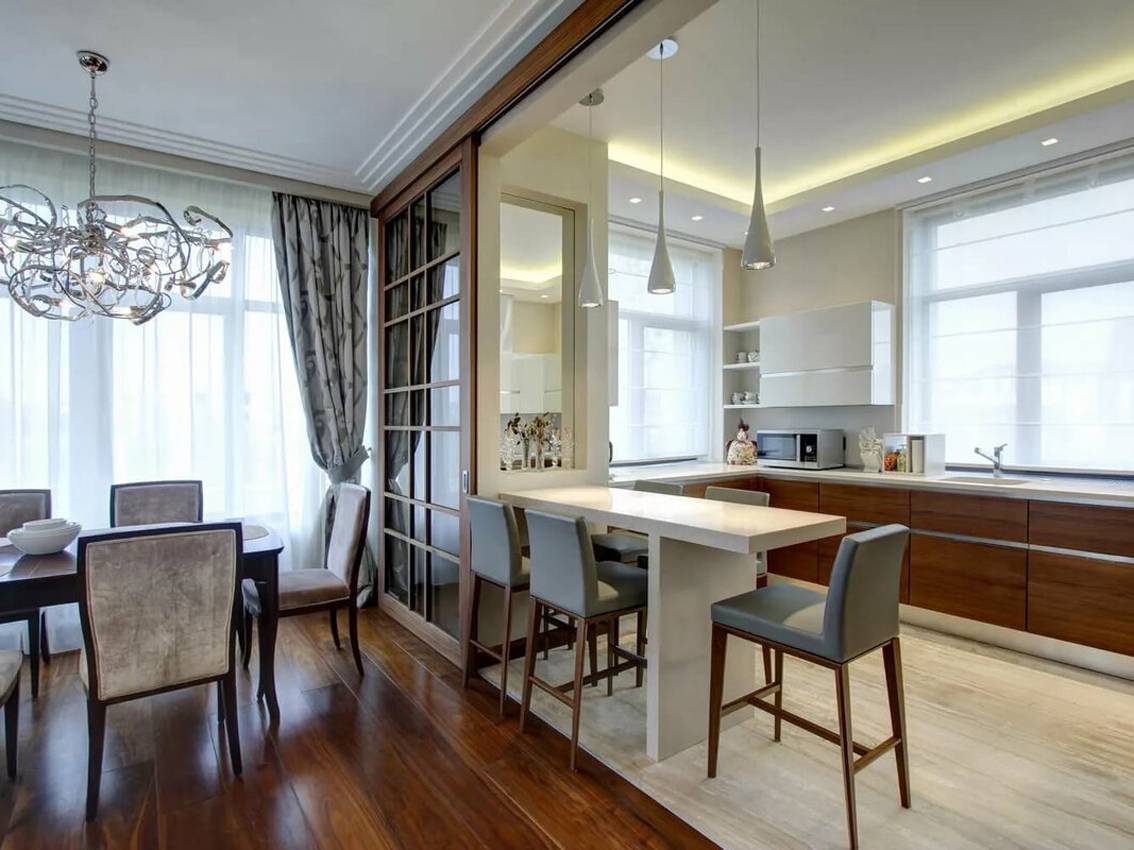Правила зонирования кухни, гостиной и столовой
