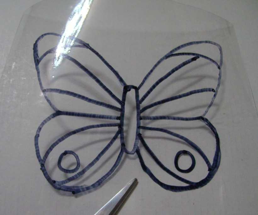 После полного высыхания контура изображения можно вырезать изображение и нанести слой лака или краски, которые будут как орнамент. Также можно разнообразить работу. Голова и усики бабочки могут быть выполнены из бисера и проволоки.