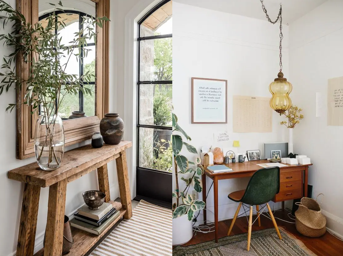 На поверхности консольного стола стоит навести порядок: избавиться от лишнего, а площадь столешницы организовать с помощью корзинок, контейнеров, шкатулок или вазочек