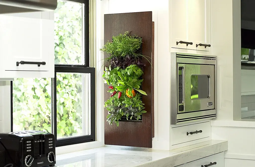 На первый взгляд эта кухня напоминает нам грядку с растениями, но если приподнять верхнюю панель, мы увидим рабочую поверхность с плитой и мойкой. Вот такой вот аккордеон,