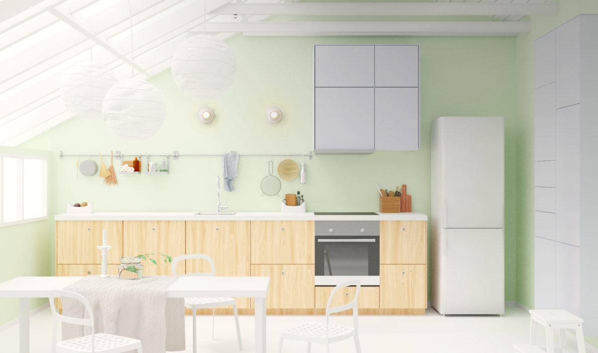 Цена кухонного гарнитура зависит от многих пунктов: материала, внутреннего наполнения, наличия встроенной техники и, конечно, от его размера. На последнем можно сэкономить. Замечали ли вы, как часто на снимках скандинавских кухонь отсутствует верхний ряд шкафов? Их заменяют открытыми полками или рейлингами. Такой вариант подходит не всем: если у вас недостаточно мест для хранения в нижних ящиках или вы — не фанат перманентной уборки (пыль-то на открытых пространствах скапливается быстрее), то лучше все-таки остановиться на классическом варианте со шкафами. Если же вы любите и умеете создавать красоту «на ровном месте», то не бойтесь экспериментов, в конце концов верхние шкафы можно подобрать и повесить позже, если вариант с открытыми полками вам не подойдет. Так сделала дизайнер Ася Бондарева в своем загородном доме.