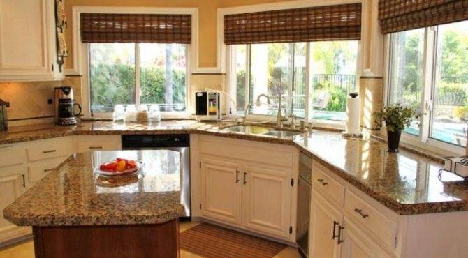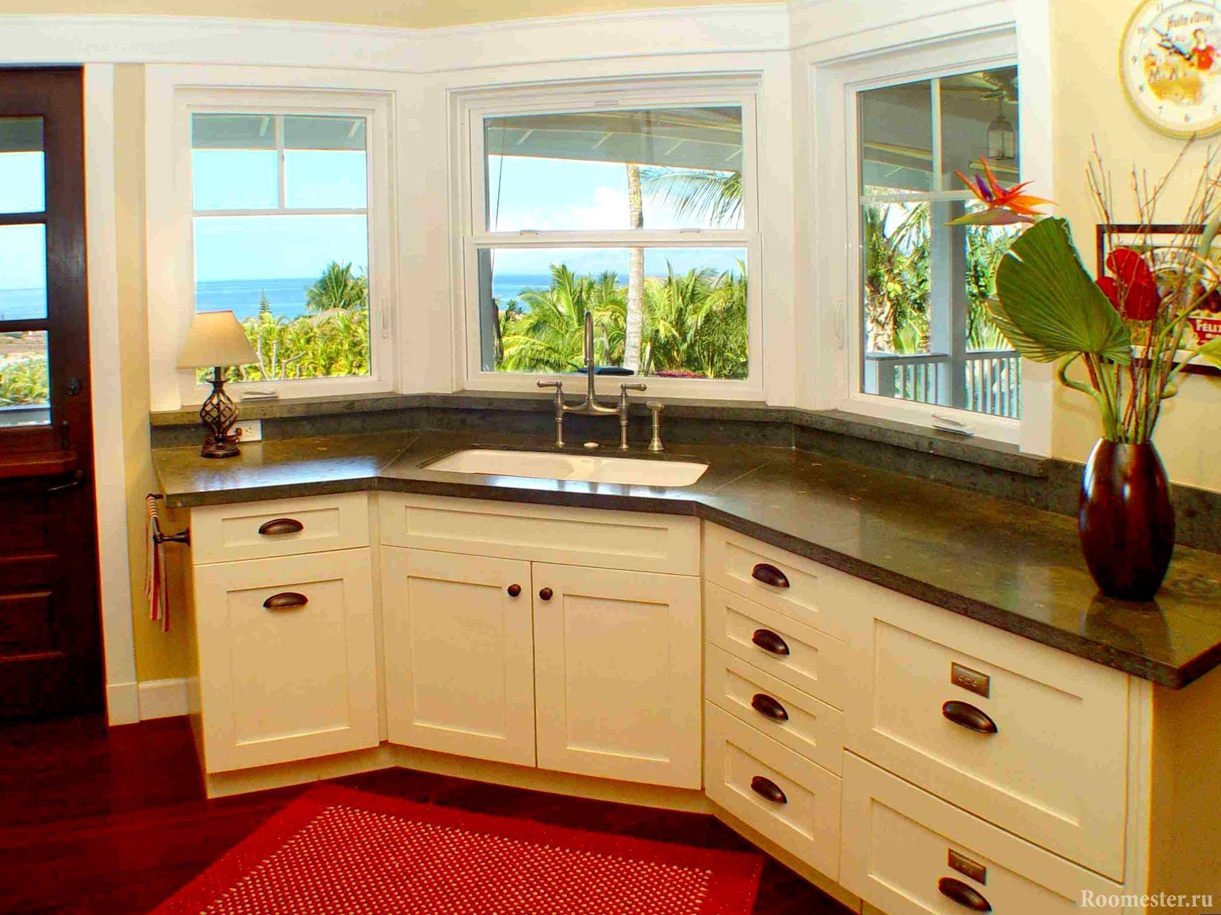 Кухня с угловыми окнами