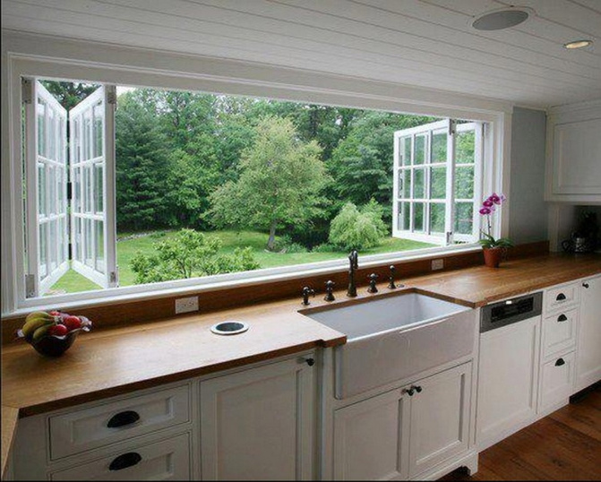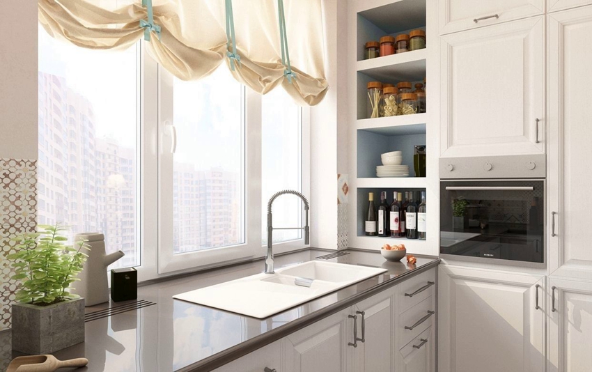 Вы владелец кухни с большим окном или маленьким? А может быть проем не один, а два? В любом из 3 вариантов есть 4 стандартных способа полезного использования архитектурного проема.
