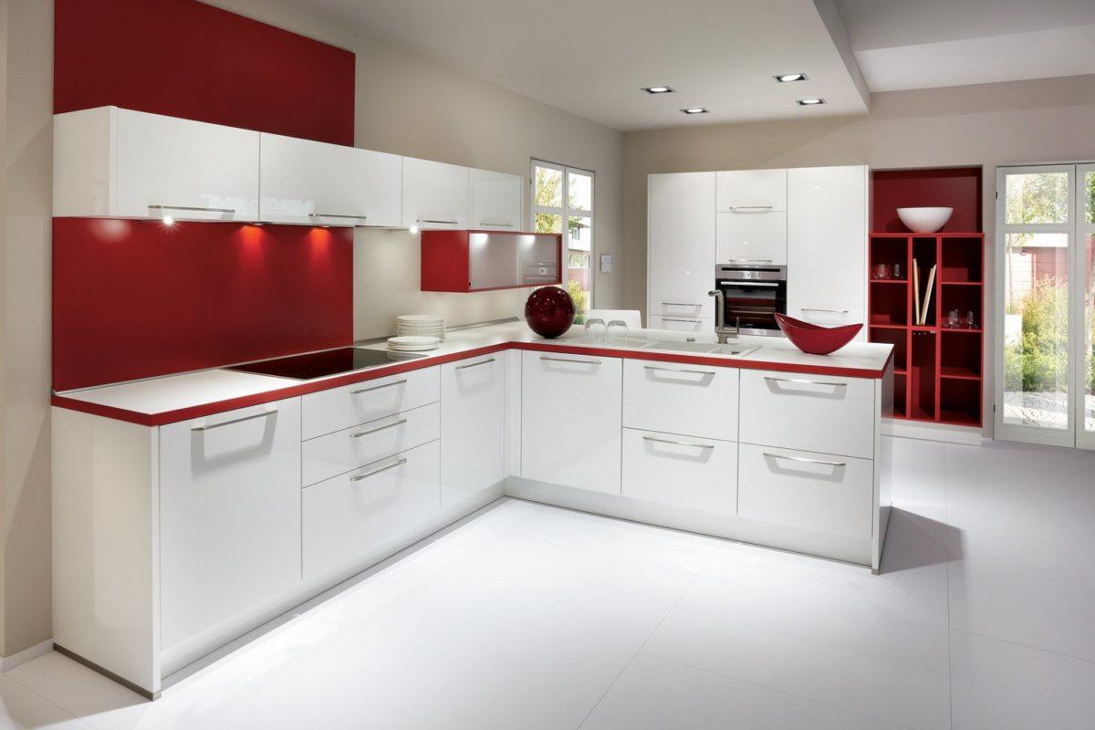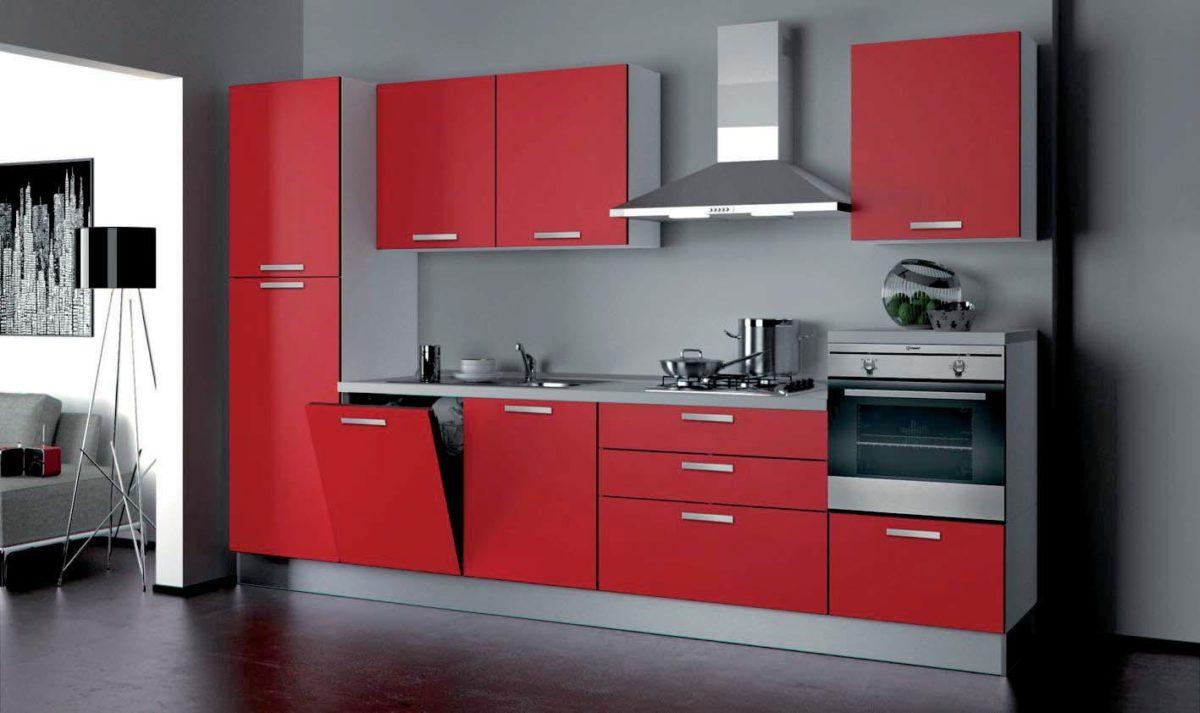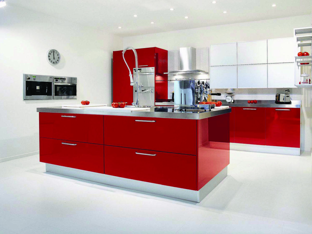 Впрочем, вполне допустим и красный кухонный гарнитур, если отделка стен имеет нейтральный цвет, а лучше – белый как на фото ниже.