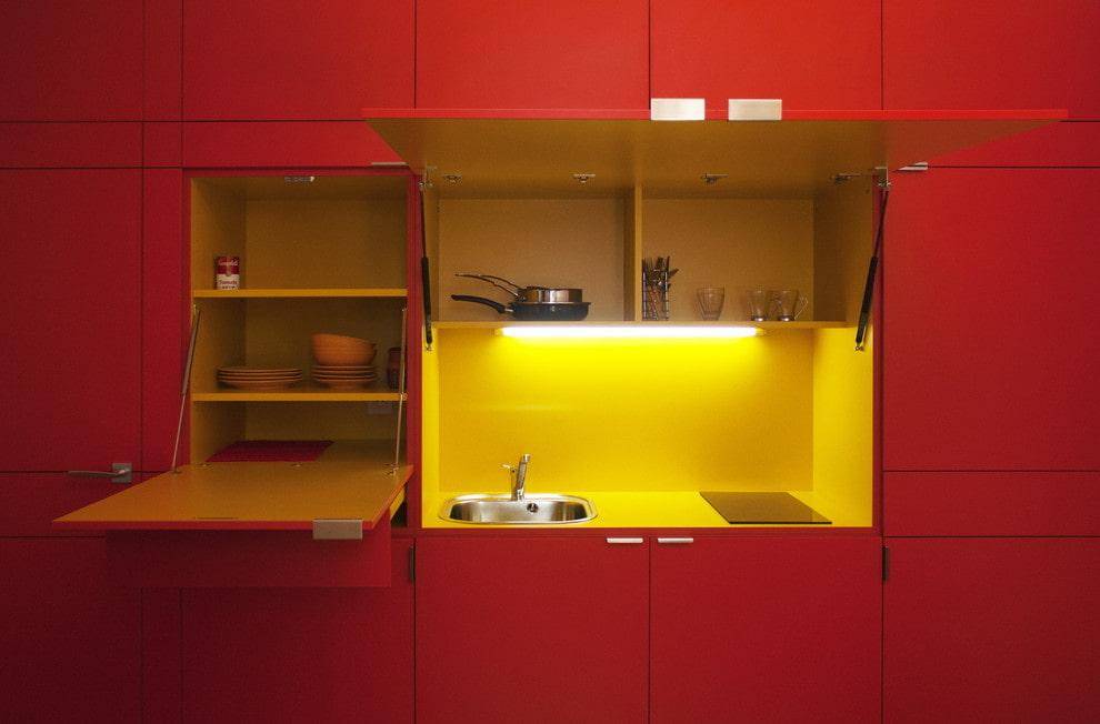 2. В интерьере маленькой кухни используйте красный в виде акцентов