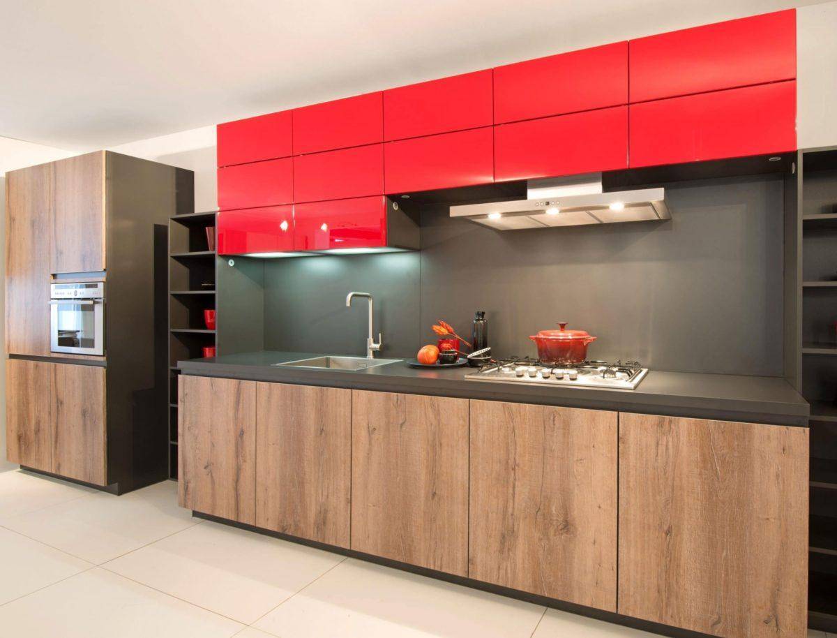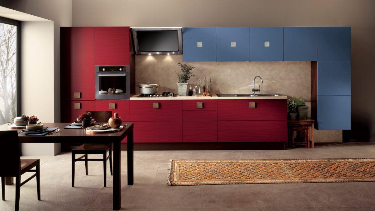 Красные гарнитуры кухонь могут быть однотонными или сформированными из двух-трёх оттенков. Современные конфигурации гарнитуров позволяют сочетать тона разными способами – по горизонтали, вертикали, в шахматном порядке. Брать идеи можно с представленных фото красных кухонь.