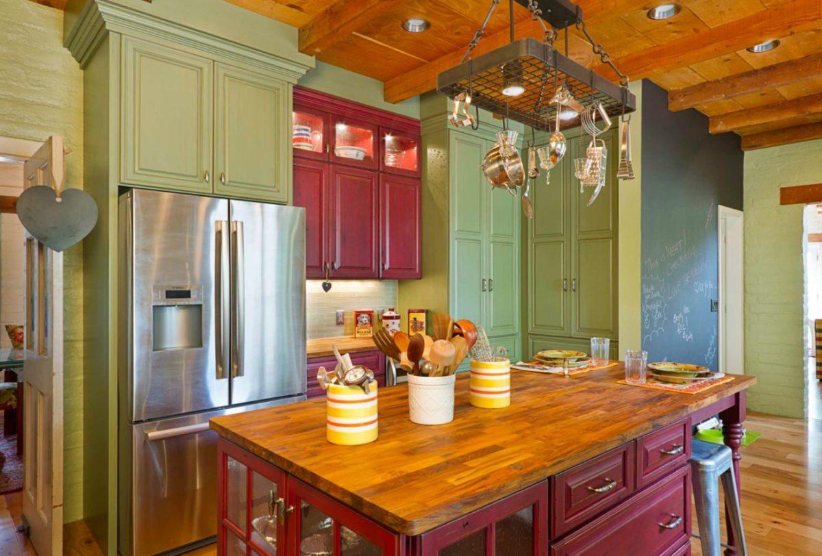 Сочетание красного и зеленого в интерьере кухни делает его оригинальным и в то же время как бы приближает его к природе. Но следует помнить, что не все красные и зеленоватые тона удачно сочетаются между собой.