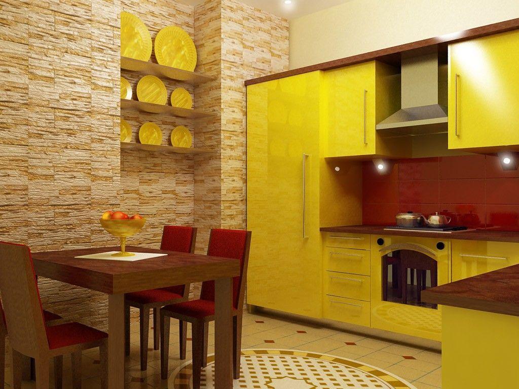 положительно сказывается на повышении аппетита. Поэтому, если у человека нет проблем с лишним весом, то этот цвет будет идеальным для оформления кухни.