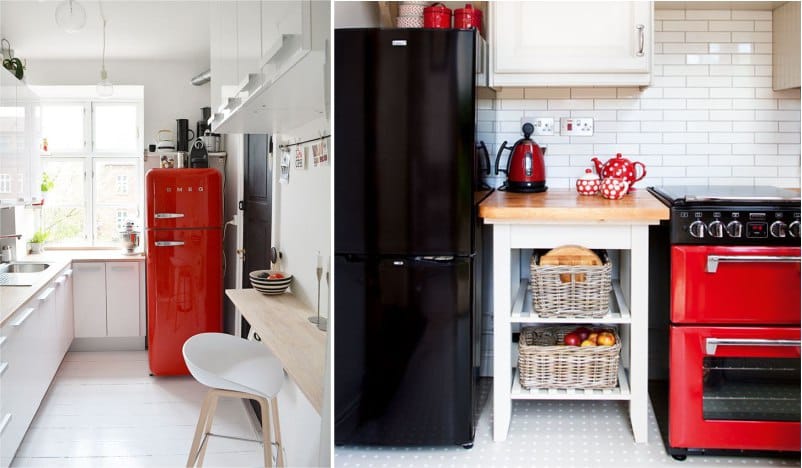 Отличное решение — красный холодильник, который санет ярким арт-объектом на любой кухне