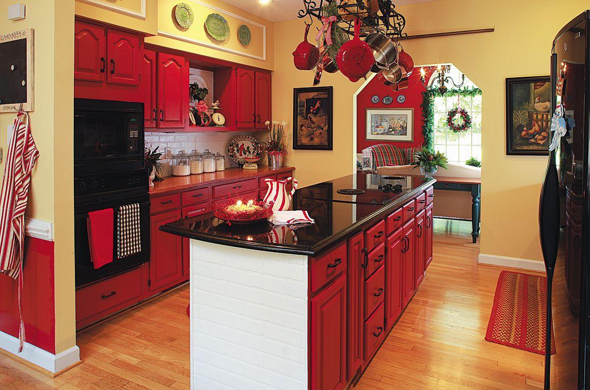 Для оформления интерьера кухни в красном цвете лучше выбрать мягкие теплые тона красного