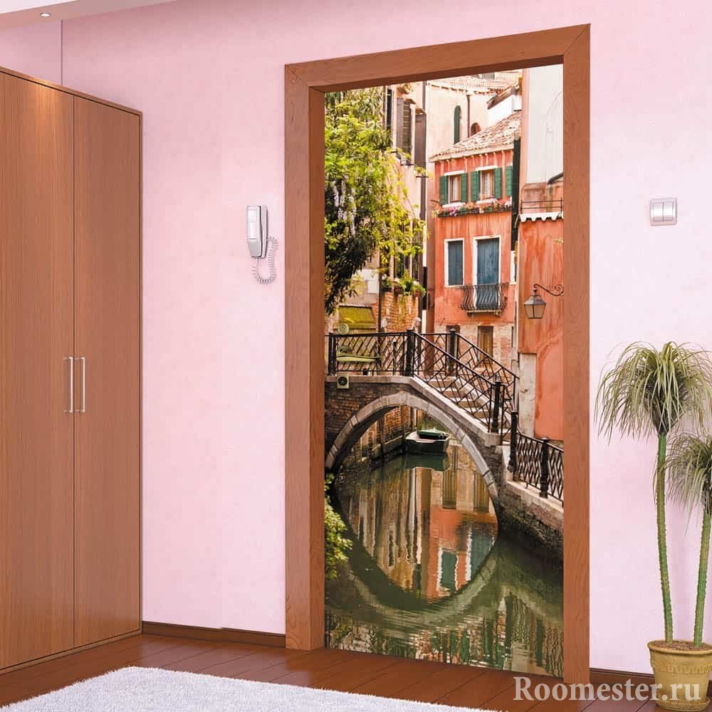 Минус фотообоев – малый срок службы. Дверь часто открывается и закрывается, поэтому такая отделка изнашивается на створке гораздо быстрее, чем на стене.