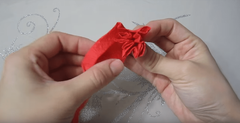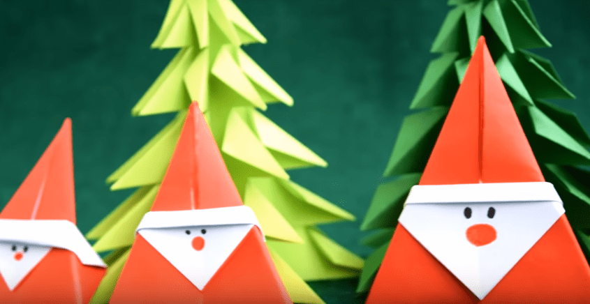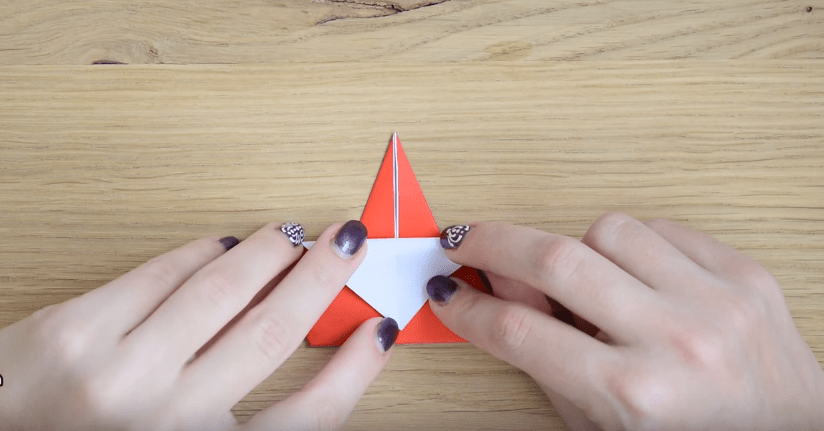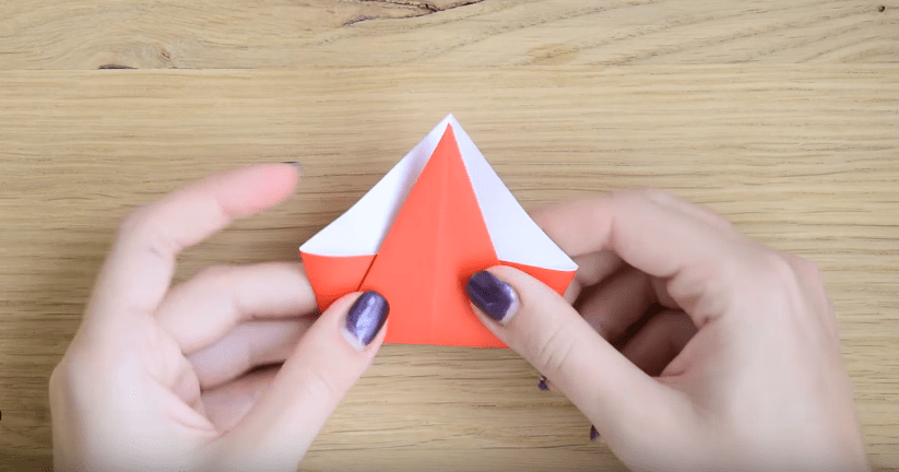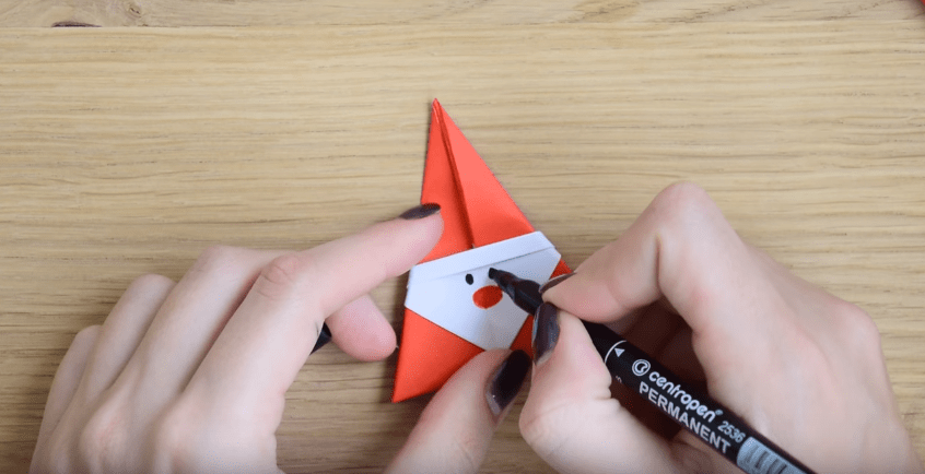 6. Загибаем торчащие боковые части и бумажный дед мороз почти готов.
