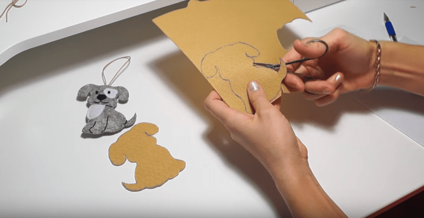 С помощью трафарета делаем два одинаковых контура из фетра.