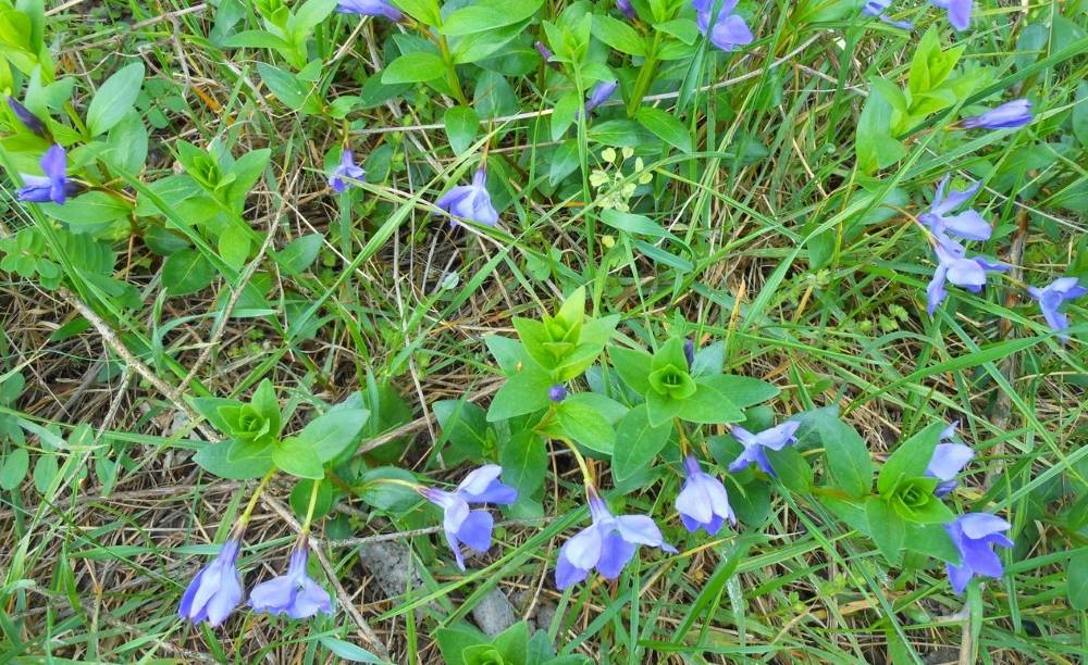 Это стелющийся кустарник, покрытый листьями светло-зелёного или темно-изумрудного оттенка. Его цветки могут быть окрашены в белый или розовый цвет, но чаще всего они синие.