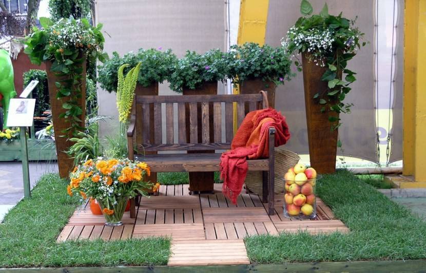 Но можно обойти препятствия и создать видимость прудика с помощью цветов. Их высаживают в форме водоема, а сверху устанавливается мостик. Такой декоративный прием позволяет каждое лето менять растения.