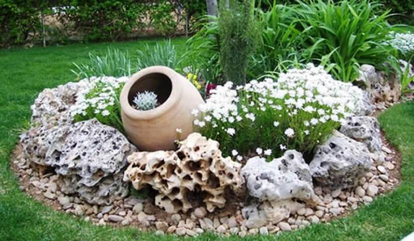 Какие декорации можно использовать? Здесь вы полностью вольны, за одним лишь исключением — выбирайте долговечные и эстетически красивые варианты. Конечно, клумбы из старых колес бывают красивыми, но если вы не уверены в том, что станете подкрашивать такое изделие каждый сезон, то лучше выбрать что-то, не требующее внимания.