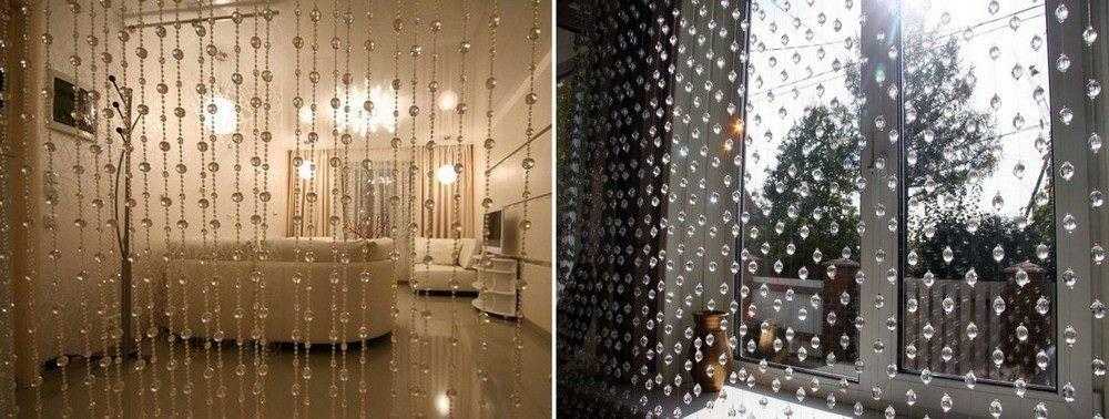 Если правильно подобрать освещение, простые шторы из старых хрустальных бусин будут выглядеть очень эффектно