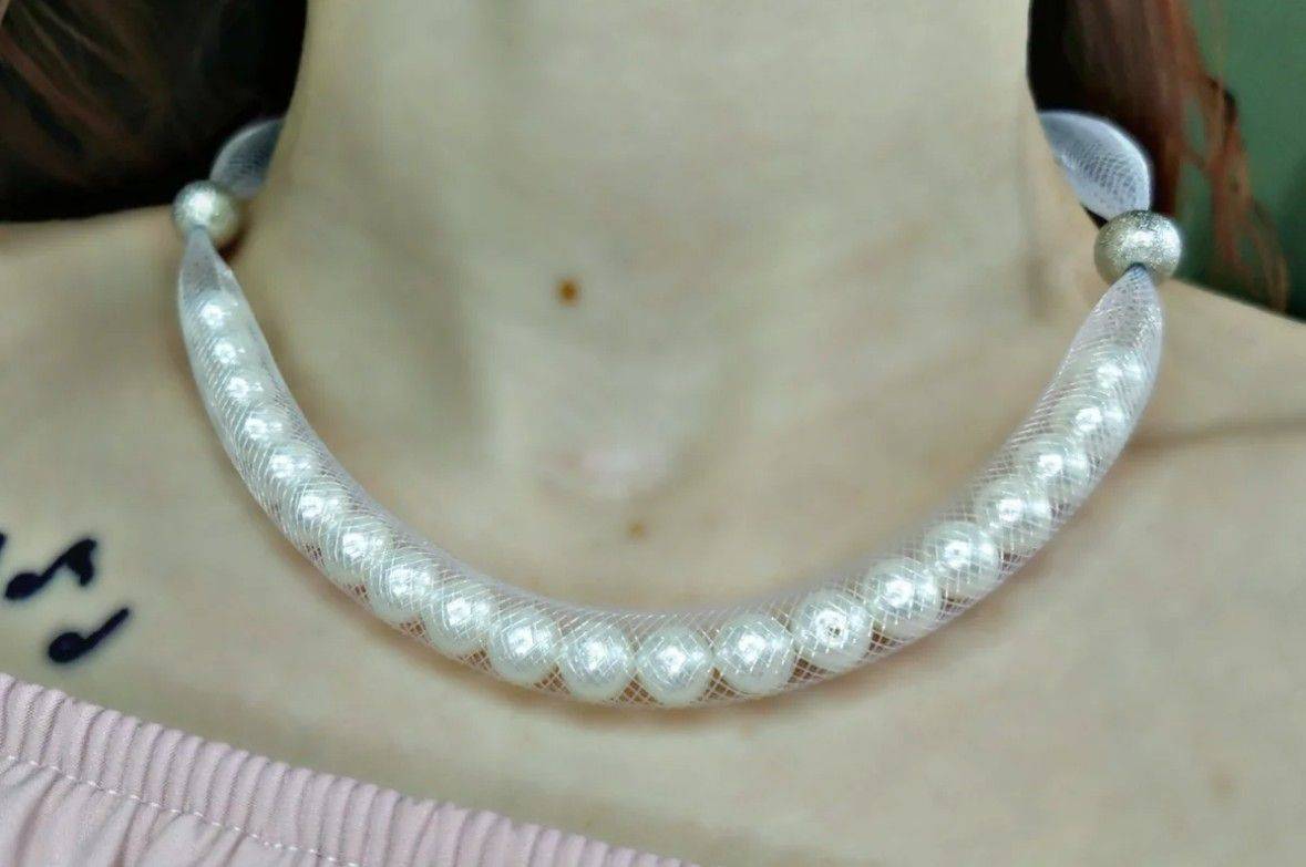 Самое простое и оригинальное решение для изготовления украшения из бусин своими руками – использование бижутерной сетки. Здесь бусины можно даже не нанизывать – они свободно перемещаются в сетке. Концы работы завершаются стопорными бусинами, сетка заклеивается «Моментом», надеваются концевики и застежка – готово!