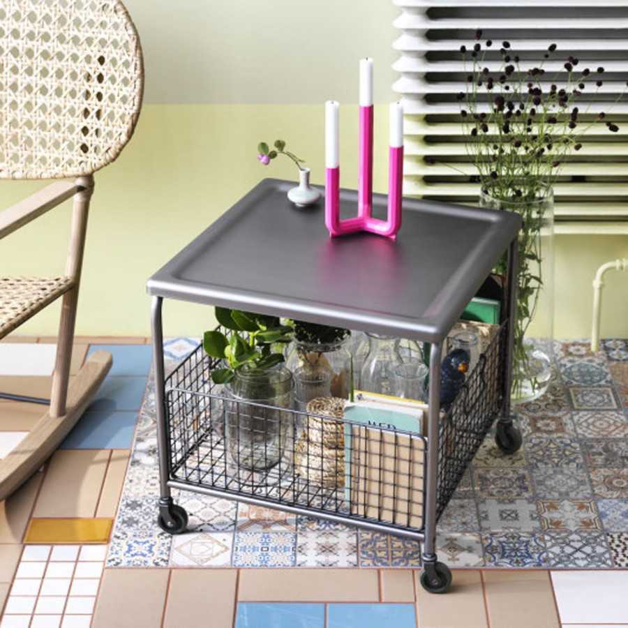 Приставной стол на колесиках «Тингби» за 2 499 рублей с нижней открытой секцией пригодится для чашечки кофе. Бокала вина или стопки журналов.