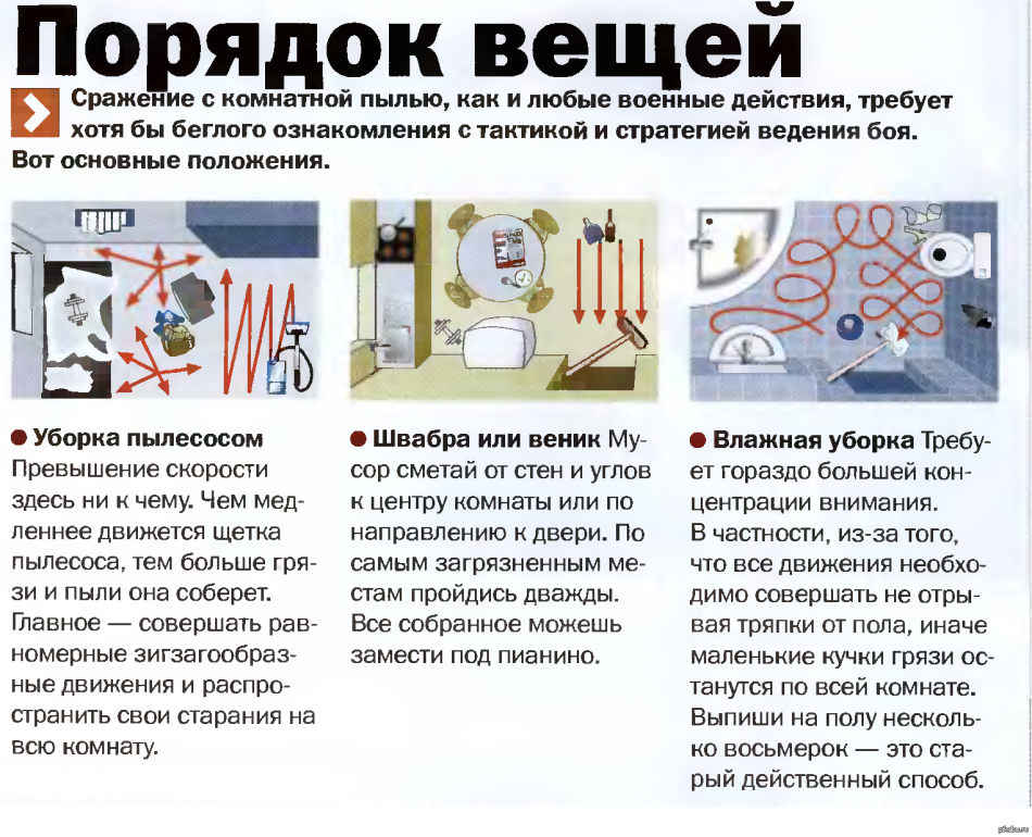 Чтобы уборка протекала наилучшим образом, стоит помнить несколько простых правил: