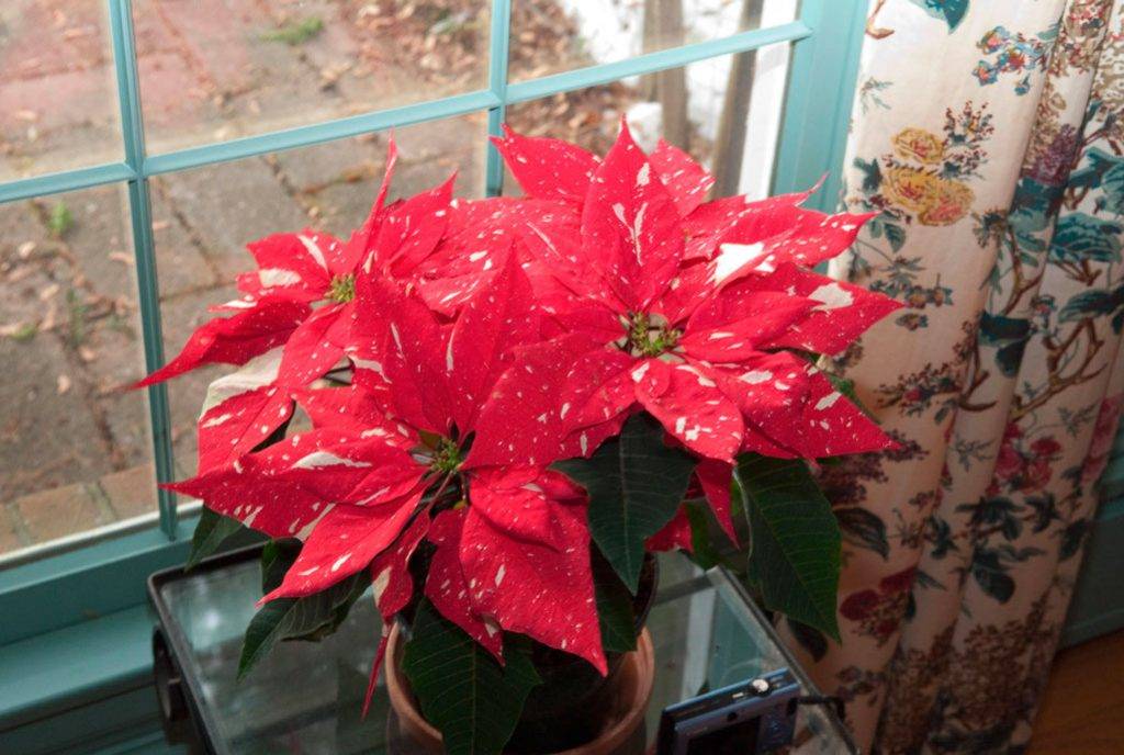 Нужно строго следить, чтобы листочки пуансеттии зимой не касались холодного стекла окна. А батарея отопления, чтобы не сушила вокруг нее воздух.