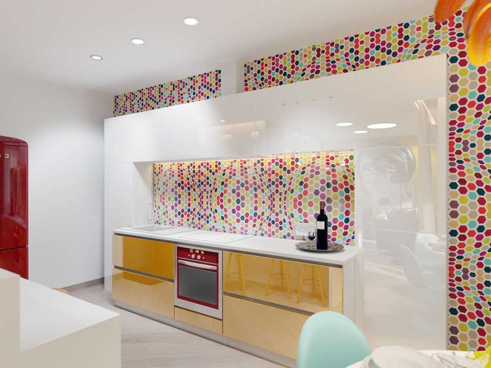 Следующая особенность, которая повлияет на выбор рисунка, – это предназначение оформляемой зоны комнаты. В зоне готовки можно поклеить изображения, соответствующие тематике кухни или настраивающие на процесс приготовления любимых блюд. Это могут быть картинки с посудой, пейзажами, цветочными и растительными элементами, абстракцией и геометрией, способствующей концентрации.