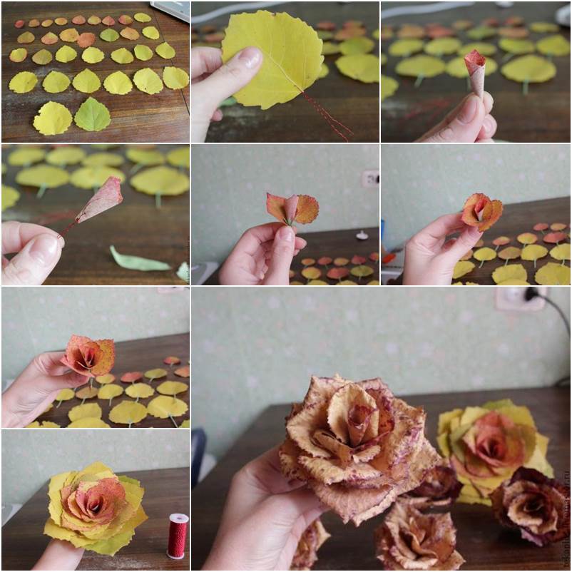 Шикарный букет можно сделать из березовых и осиновых листьев – не забудьте скрепить все элементы ниткой.