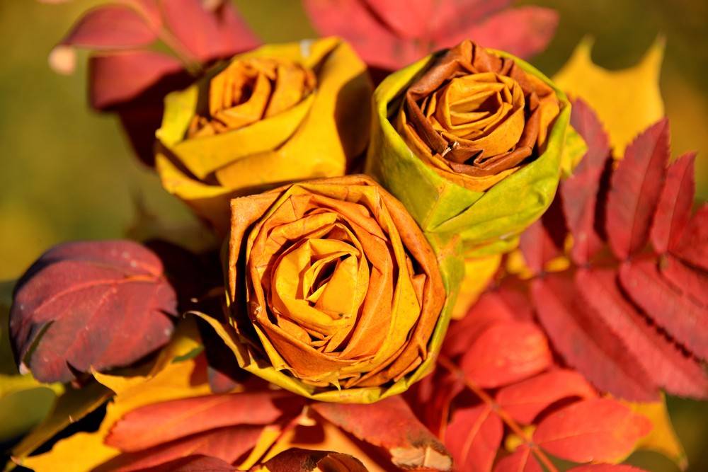 Осенние мотивы очень многогранны, они яркие, сочные и эффектные, при этом настроение увядания природы может быть как основным, так и полунамёком. Достаточно яркой ветви с красивыми осенними листьями, соединённой с цветами в тон, чтобы получить изящный ансамбль. Фантазия здесь ничем не сдерживается.