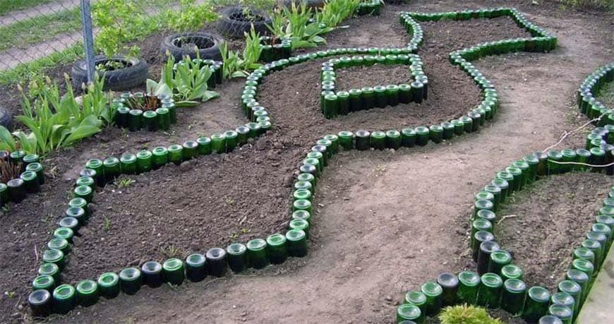 Если среди инструментов имеется стеклорез, то можно сделать оригинальные горшки из стеклянных бутылок. Подобные поделки смотрятся очень стильно и с легкостью вписываются в любой дизайн. Таким же образом можно изготовить и подставки для свечей.