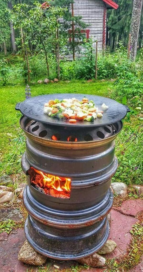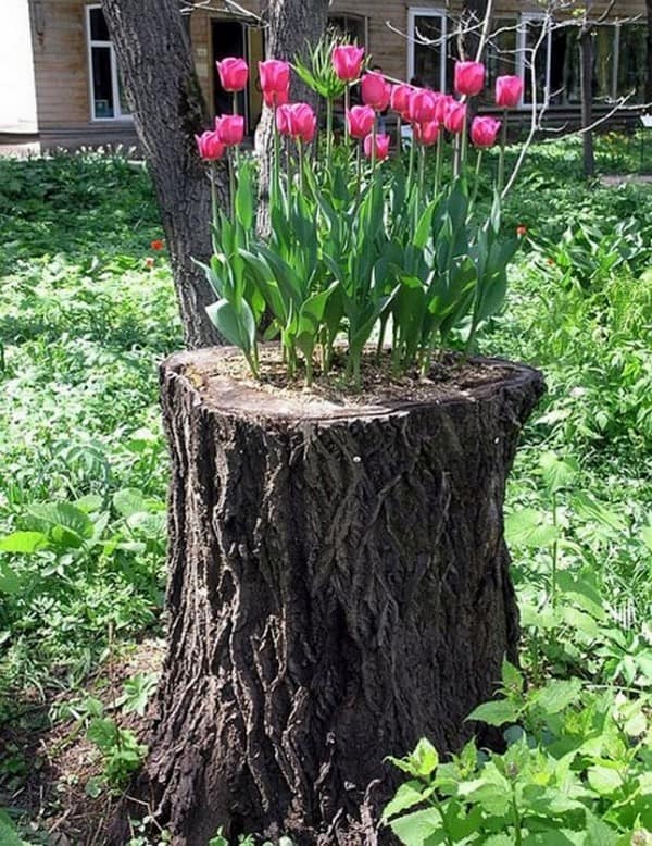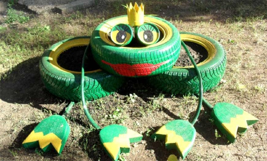 У каждого автомобилиста всегда найдутся старые шины. Их можно просто покрасить и сделать из них яркие основы для клумбы, а можно проявить фантазию и вырезать различные фигуры.