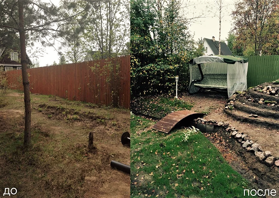 Дизайн дома делал муж, на свое усмотрение. Я здесь помогала только в качестве маляра. Конечно, параллельно шла очистка участка от сорняков. Убирали ненужные деревья и кустарники.
