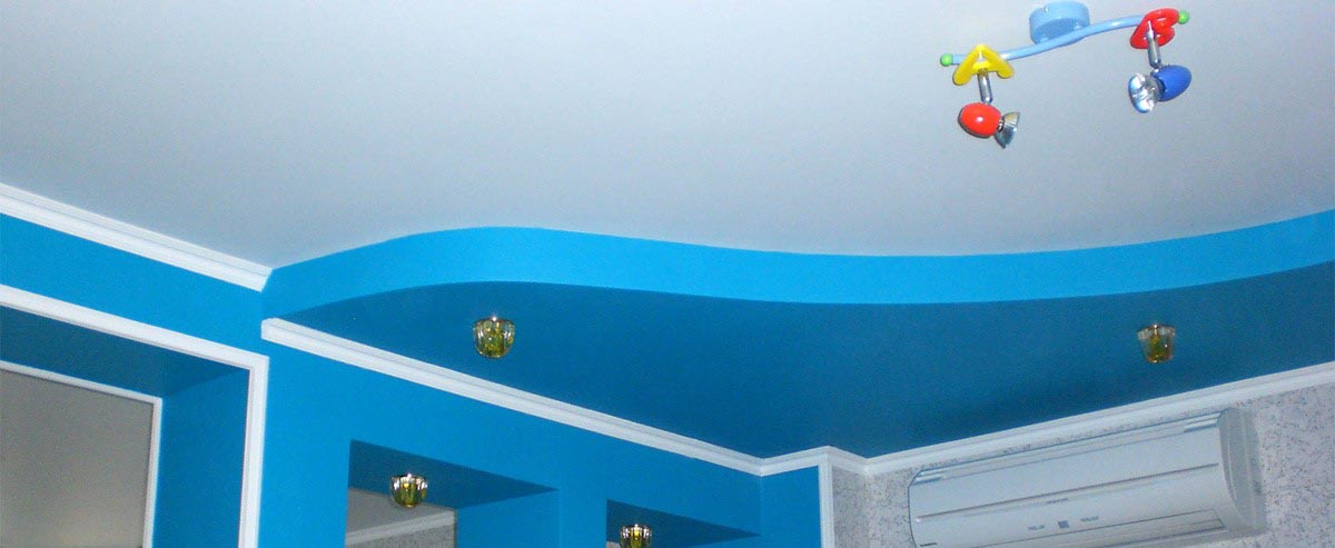 Для осуществления многослойности используется гипсокартон. Он достаточно легкий, и может принимать любую форму. Это позволяет не только сделать Ваш потолок в несколько “этажей”, но и вылепить волны, любые фигуры, рамки, объемное звездное небо и воплотить любые другие идеи.