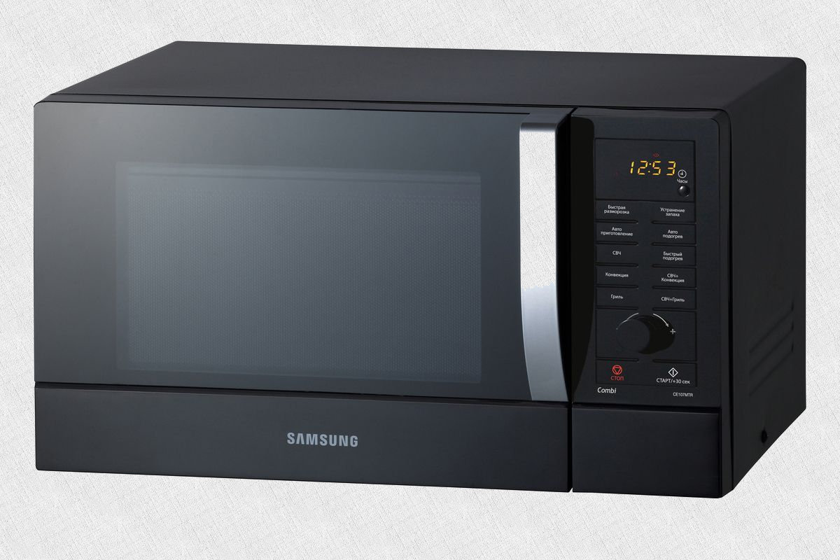 - Samsung ME81KRW-1 привлекает биокерамикой внутри камеры и стильным дизайном. Волны распределяются в печи равномерно, поэтому пища разогревается быстро. Имеются удобные переключатели и звуковой сигнал. Покупателей особенно радует большая вместимость рабочего пространства, хотя иногда отмечается слабость подсветки.