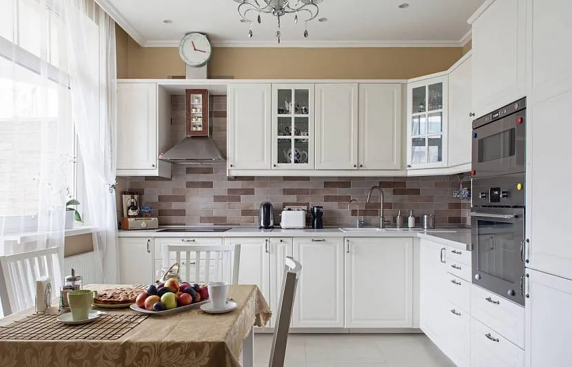 Неуместные элементы на небольшой угловой кухне способны испортить даже самый дорогой гарнитур. Самый эффективный способ сделать помещение оптически шире – исключить визуальный шум в виде обоев с мелким рисунком, магнитов на холодильнике, украшений на фасадах и аляповатых штор на окнах.