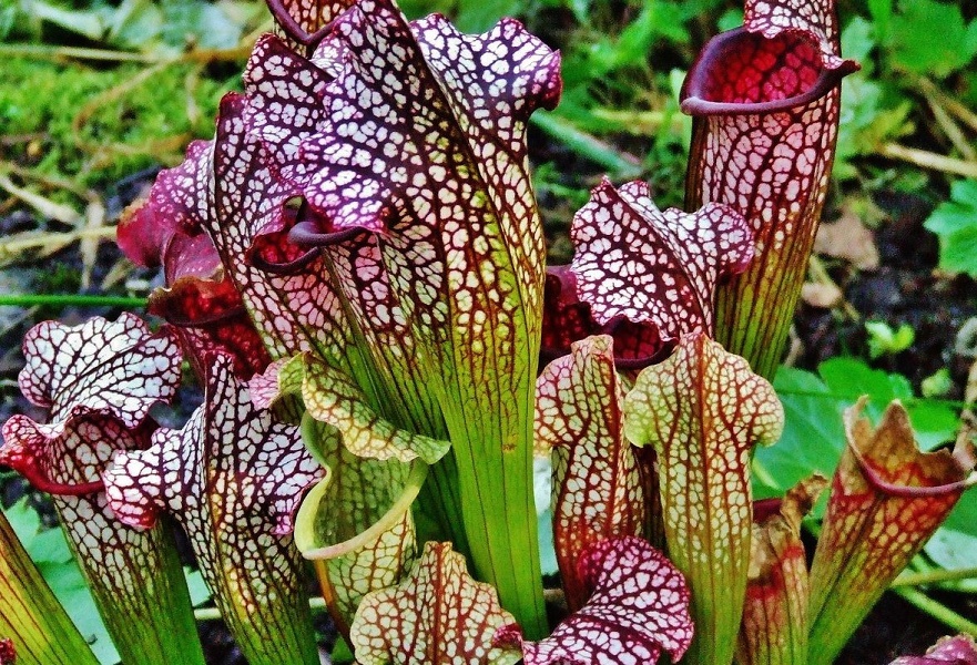 Привлекает внимание оригинальной формой листьев-ловушек, напоминающих раскрытую пасть монстра. Расцветка от ярко-зеленой до насыщенно-пурпурной придает побегам и листьям невероятный внешний вид, который хорошо сочетается с другой зеленью