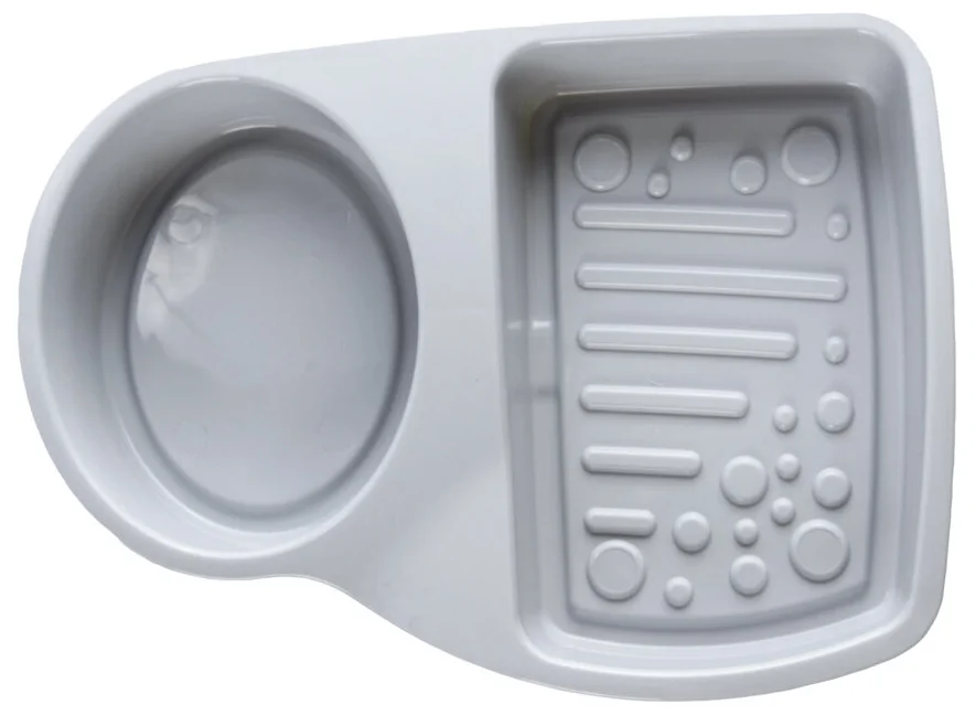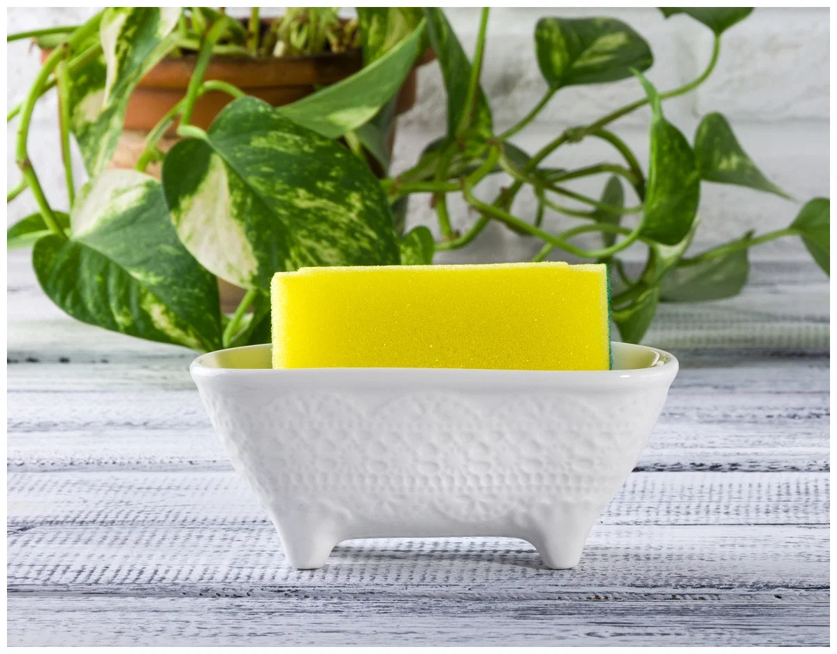 - Можно купить дизайнерский поддон для губок или самостоятельно декорировать любой пищевой бокс, подходящий по габаритам. Красивее всего будут смотреться керамические модели.